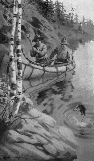 This incident, trifling of itself, brought consequences to our young friends of which none of them dreamed. Alvin and Chester while at home had become interested in the admirable Boy Scout organization, and had joined the Blazing Arrow Patrol, of which their old friend “Bert Hall” was Scout Master. He was arranging for an outing in the Adirondacks with the Stag and Eagle Patrols, when the plan was changed for reasons that will soon be explained. Their destination became Gosling Lake in southern Maine, a few miles back in the woods from the Kennebec River.