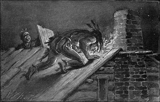 The Indian whom she had heard prowling like a hungry wolf over the roof, was there for a more sinister purpose, if possible, than that of gaining entrance through the scuttle into the building. He had managed to climb undetected to his perch for the purpose of setting fire to the building, and not only that, but he had succeeded in his design.