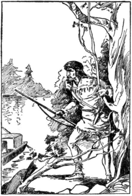 After coming into the open wood, he stood a moment, as if listening, and then strode rapidly forward, trailing a long nitid rifle as he did so. Reaching the edge of the river, he suddenly halted and darted behind a tree. His quick eye had discovered "sign." From this point he peered cautiously out, and then instantly jerked his head back again. This movement was repeated several times, until, at last he held his head in a stationary position. After gazing a few minutes, he muttered: