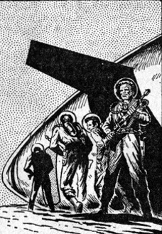 "Right," growled Burleigh again. "Brawn and Carol, you'll keep ship. The rest of us wear suits. We don't know what that stuff is outside."