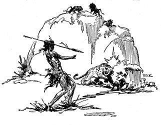 The man yawned and shifted his position. He noted the condition of the fire. It needed new fuel, and the black turned to the pile of branches and dead wood behind him. As he stooped to gather what he required, his back toward the jungle, Numa charged.